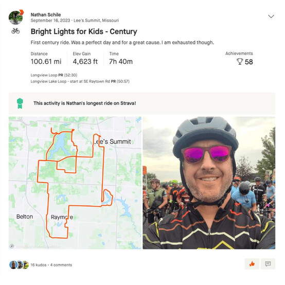 Van Deventer and Megan Criniere were both overwhelmed by the response and support from the cycling community and the public. They both hope to make this ride an annual tradition and to grow it into the largest cycling event in the Midwest. Van Deventer has already shown that he is ready to do some pretty crazy things to promote the event. Earlier this year, he did 2,328 laps around a parking lot to get word out about the Bright Lights event. That number represents every child in the Kansas City area who received support last year from CASA volunteers.